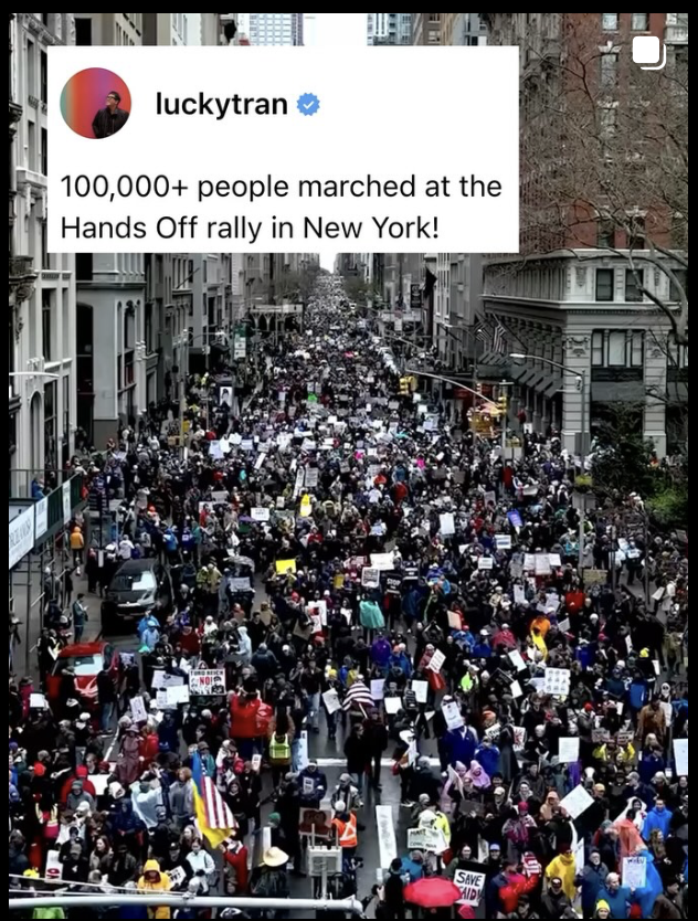 There were over 1,300 Hands Off protests around the country. And if you’re wondering if Americans are pissed at what’s being done to our nation, check out these pics.
