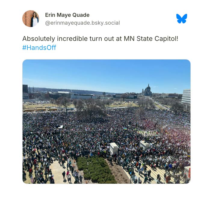 Millions of Americans took to the streets on Saturday to tell Donald Trump and Elon Musk to keep their Hands Off! – of our health care, of our jobs, of our friends and neighbors ... and of our democracy.