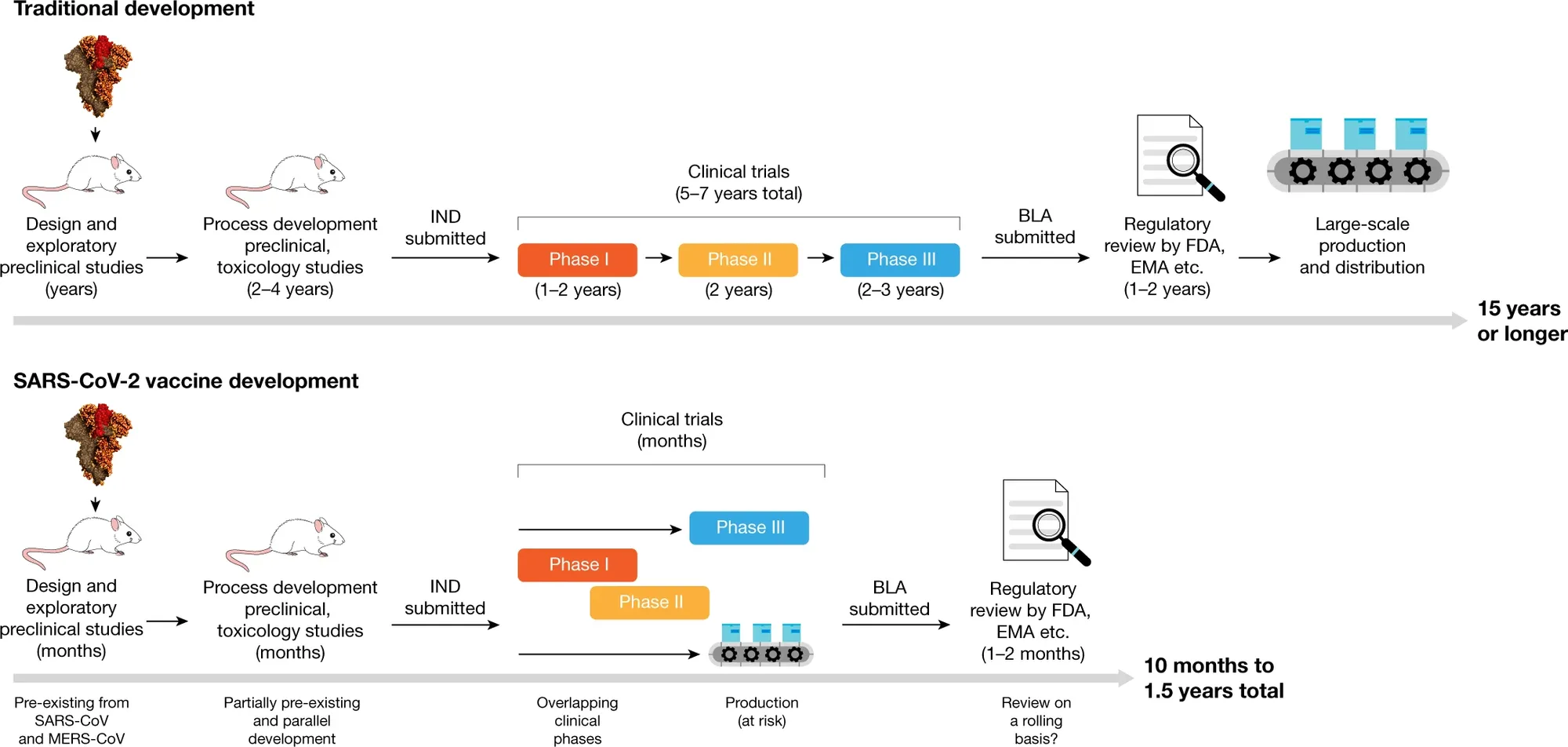 These vaccines were developed very quickly; how can we be sure that they have been fully researched and proven? The vaccines were developed, tested and given emergency-use authorization in under a year, thanks to years of previous research on related coronaviruses. Researchers had also been working on the technology for years and the timing, and federal funding by Congress and the Trump administration allowed companies to run multiple trials at the same time, saving lots of time. Surgeon General Vivek Murthy said on Twitter, "There were no corners cut in making these vaccines, what was cut was actually red tape."