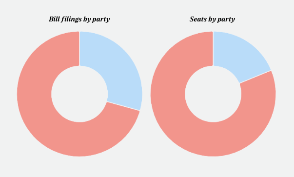 By party, Dems continue to disproportionately file more bills.