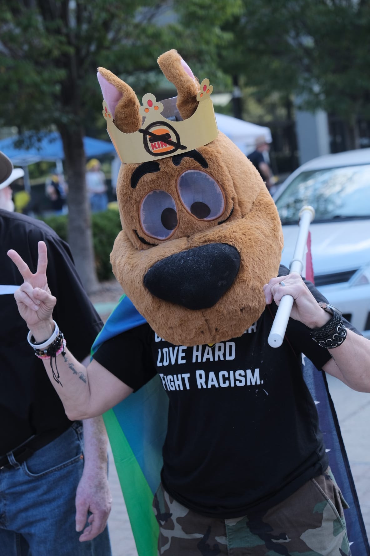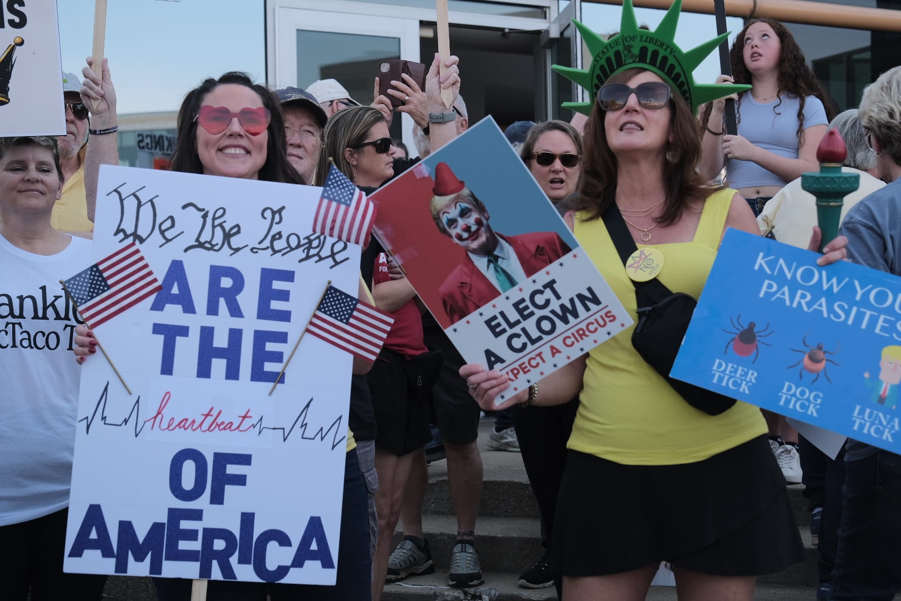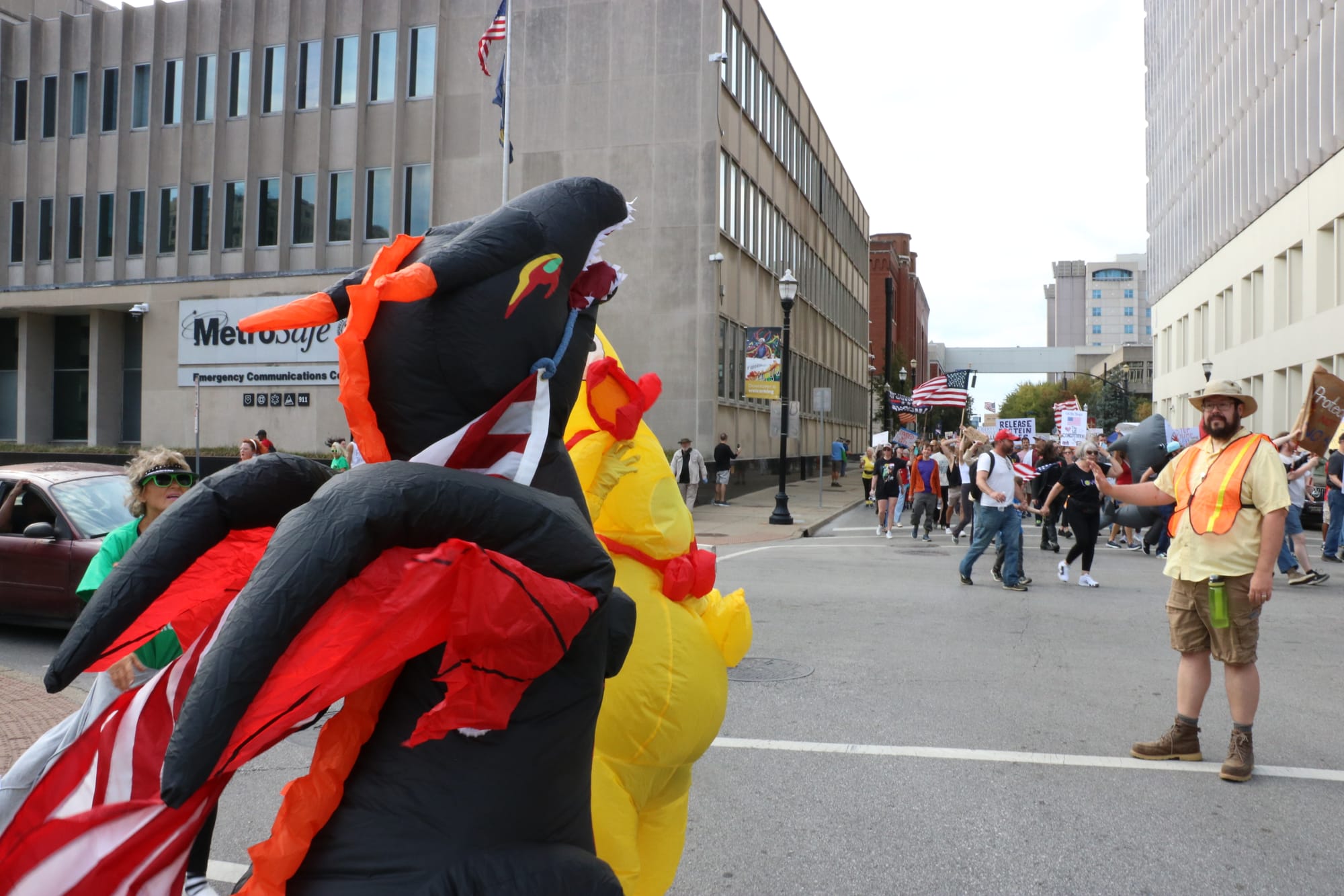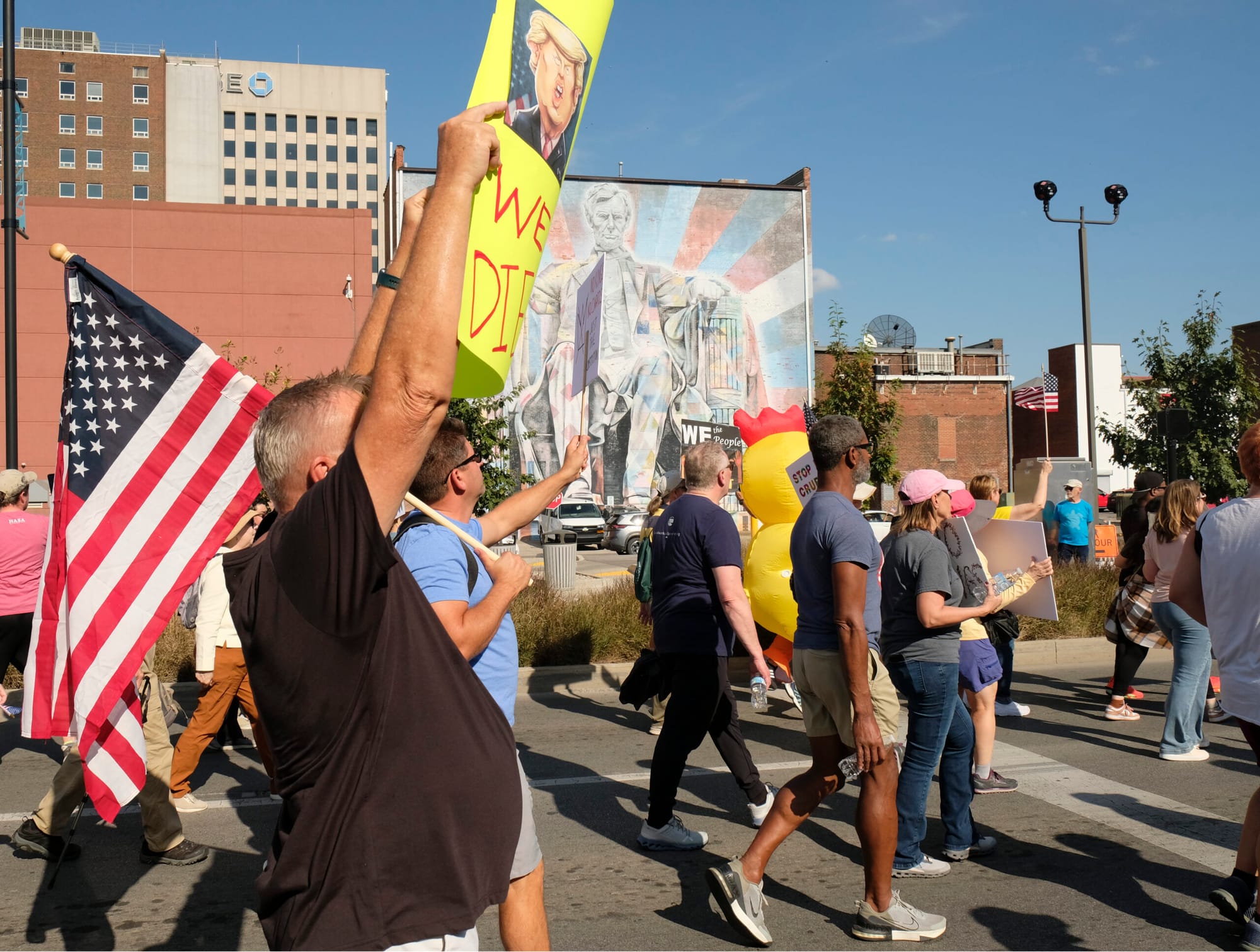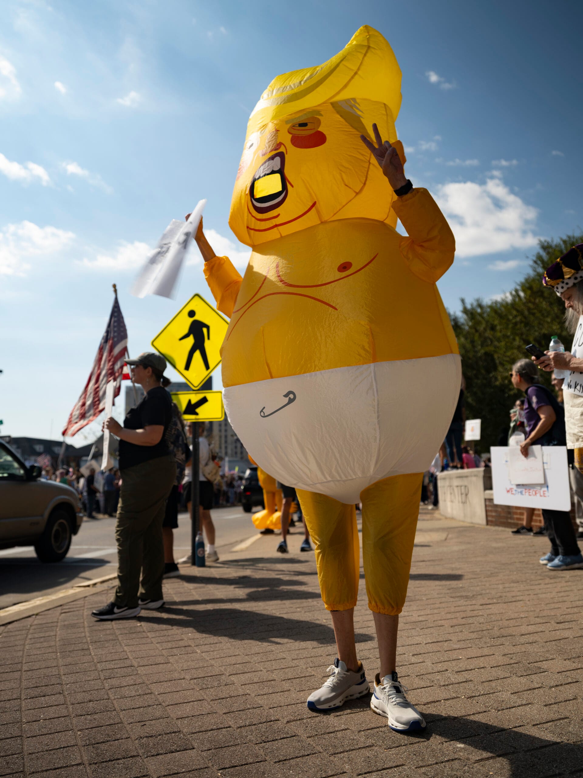 Inflatables and other costumes were in evidence at protests across Kentucky, a nod to the protesters wearing inflatable frog costumes to confront federal immigration agents in Portland, Oregon.