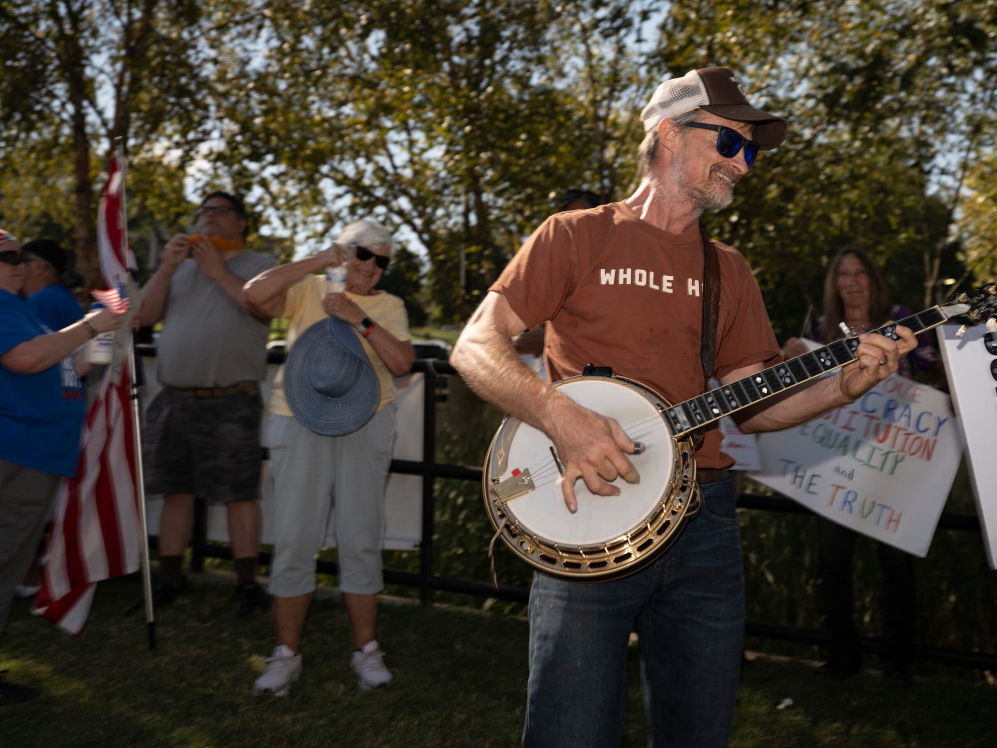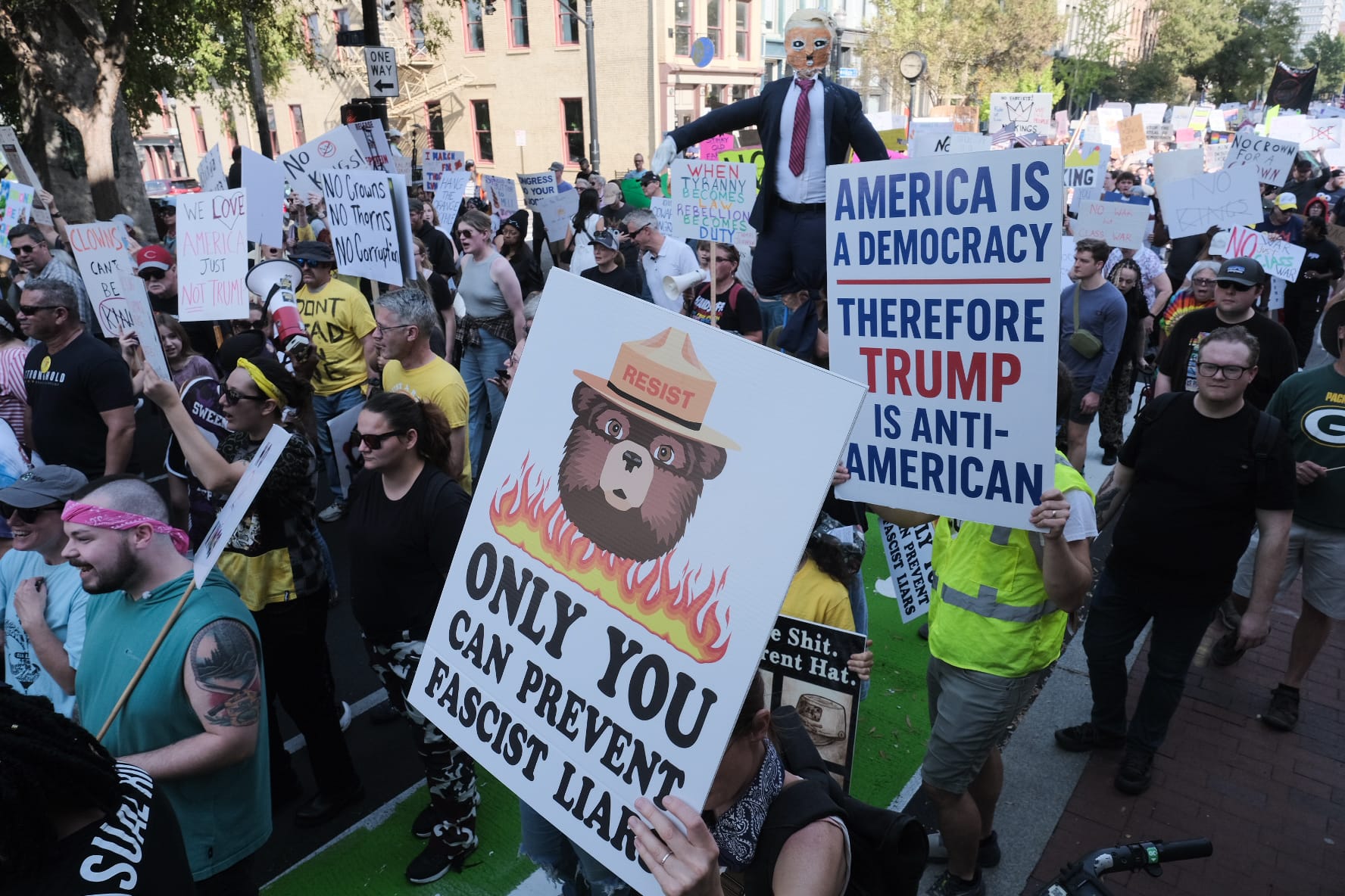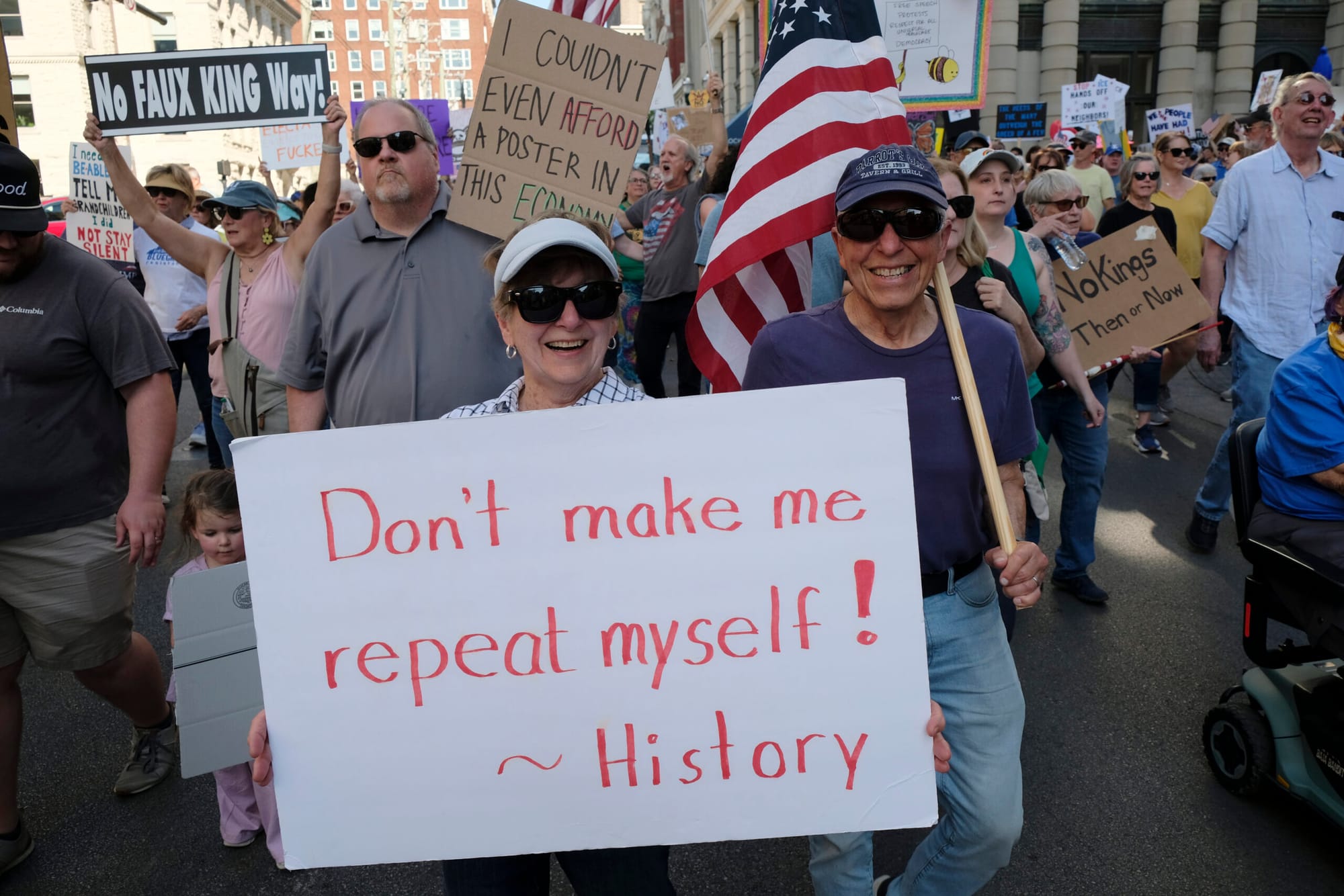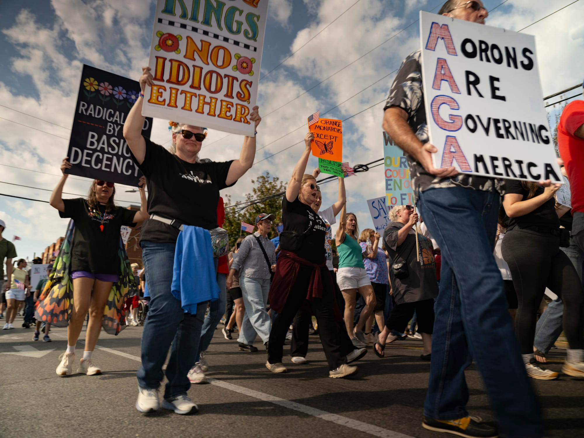 Thousands of Kentuckians turned out under the autumn sun to protest President Donald Trump’s administration, some pointedly refuting Republican claims disparaging their motives.