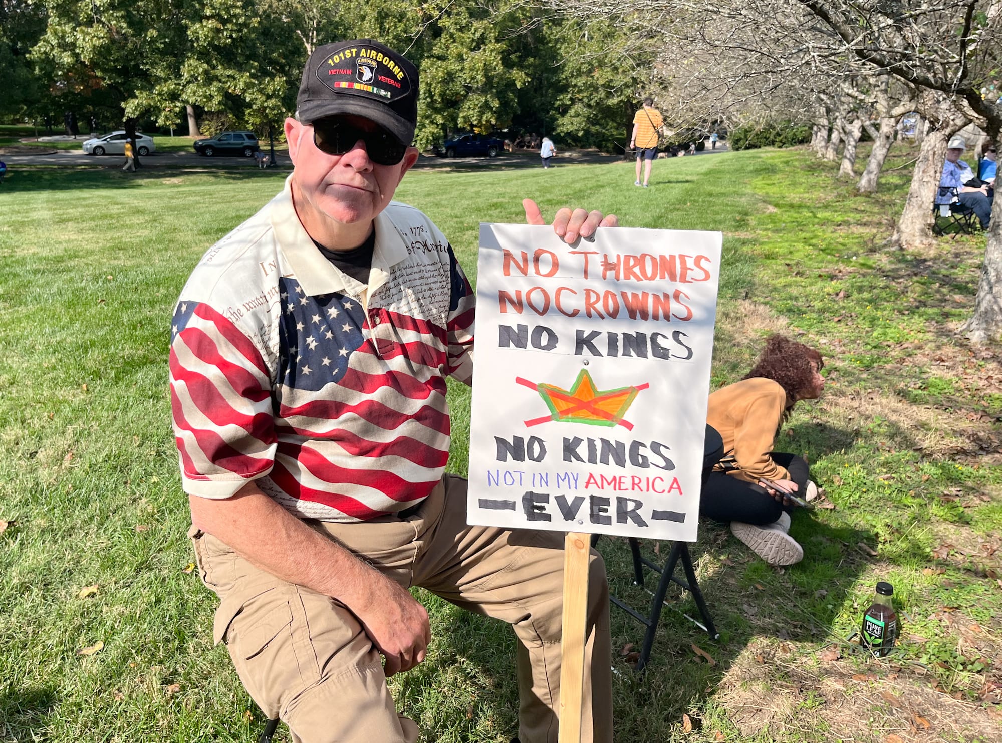 - Dennis Van Horn, a Frankfort resident and veteran, said he came to the "No Kings" rally at the Kentucky Capitol because of the anxiety he feels from the Trump administration's actions.