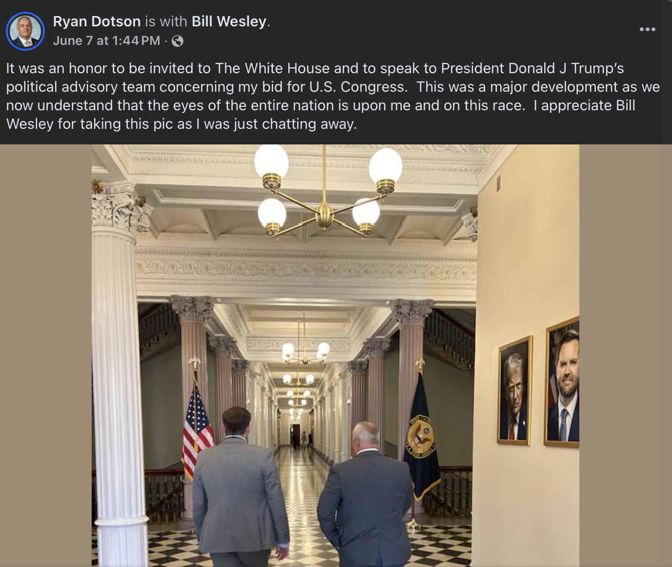 Dotson got to meet with Trump’s political advisors. Apparently, they consider his race one of the most important in the country. (Did you know that? Me neither.)