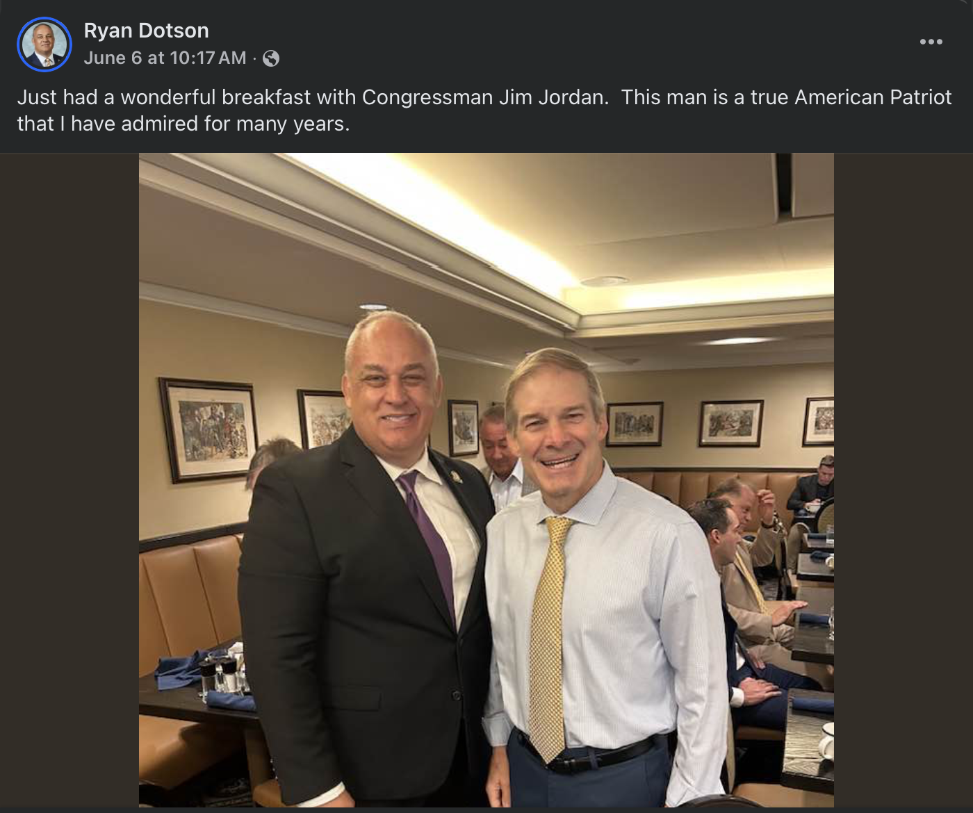 Of course, Dotson had to have breakfast with a “true American Patriot,” Jim Jordan. Apparently he conveniently forgot Jordan’s other career.