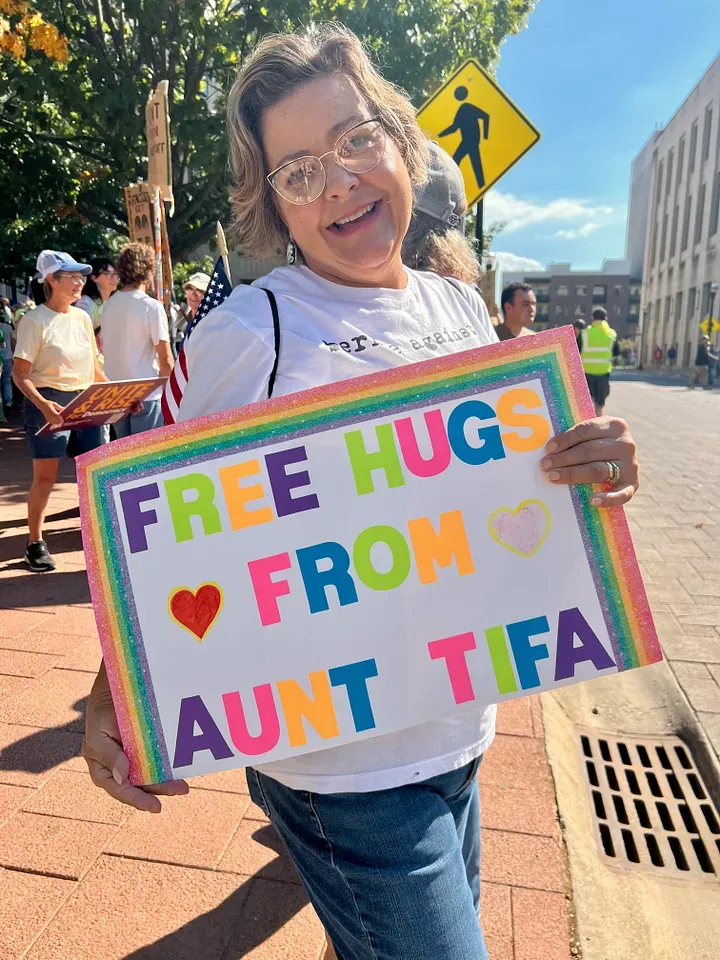 Hugged some Aunt Tifa’s, visited with many friends and met new people, sang “This Land Is Your Land,” loved on a bulldog wearing a sign that read “No Other Bullies,” still looking for that elusive paycheck!