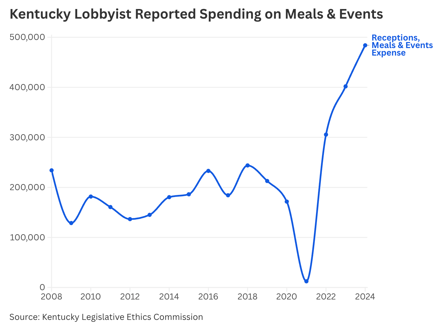 These events had a total reported pricetag of $484,000 throughout 2024, according to records obtained by the Herald-Leader from the Kentucky Legislative Ethics Commission.