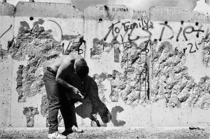 We did most of our wall banging on the more pristine east side or the wall in the former killing zone. The west side of the wall was covered in graffiti.