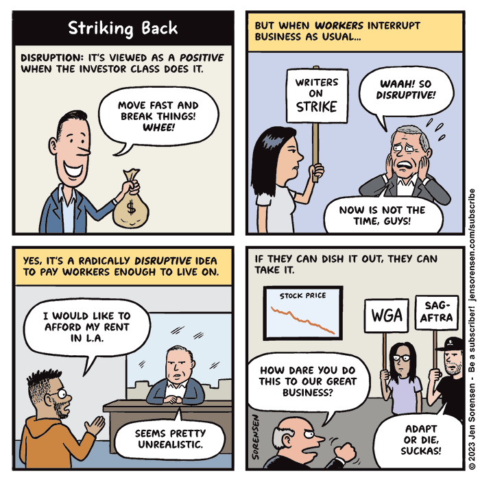 Jen Sorensen on the “disruption” caused by striking workers.