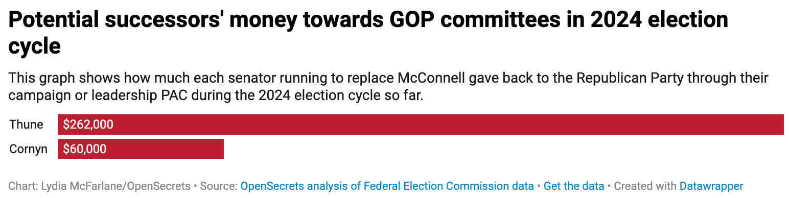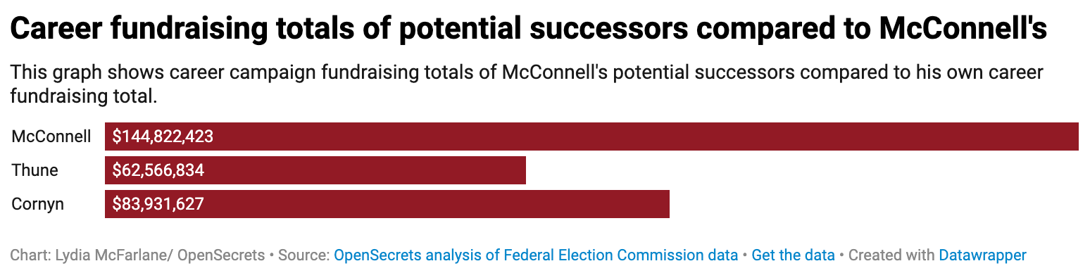 McConnell, the longest-serving Senate party leader, has been a major fundraiser for the Republican Party. Since 2015, McConnell has raised more than $1 billion for Republicans through outside groups affiliated with him, and his successor will be expected to maintain that pace once he has stepped down.