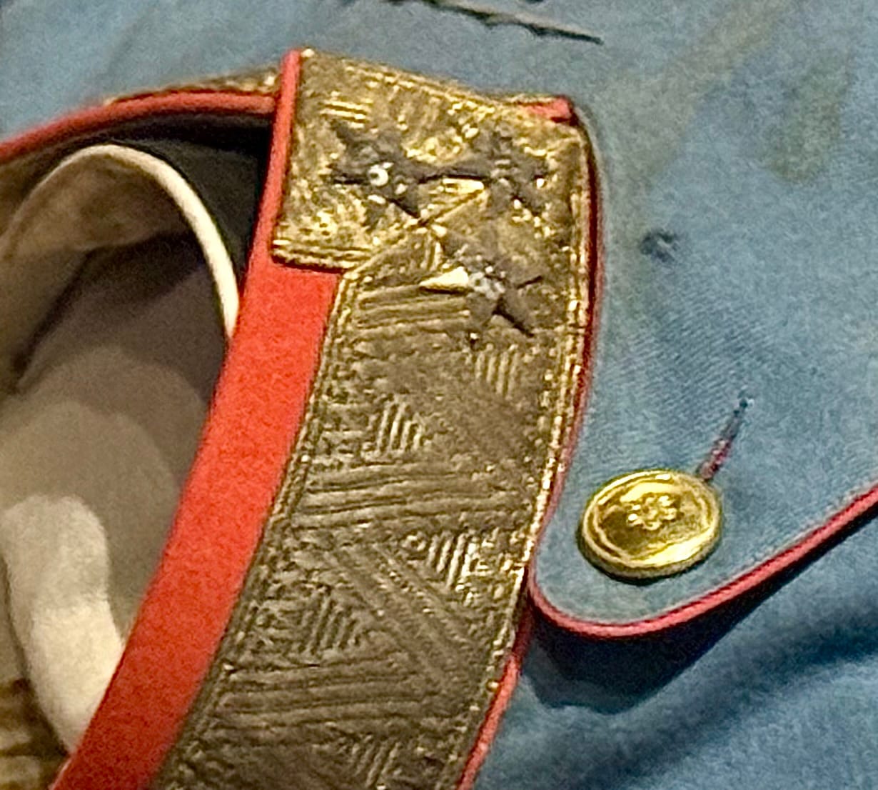 In a nearby display case is Franz Ferdinand’s faintly bloodstained bluish-gray tunic. There is a tiny hole, just below the collar on the right side, where Princip’s fatal round struck him.