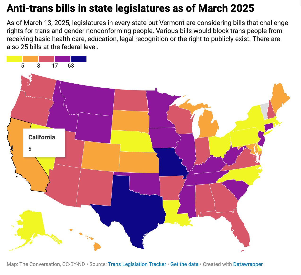 A state law signed Feb. 28, 2025, removes gender identity as a protected status from the Iowa Civil Rights Act, leaving transgender people vulnerable to discrimination. The rights of transgender people – those who present gender characteristics that differ from what has historically been expected of someone based on their biological sex traits – are under political attack across the United States. There are now hundreds of anti-trans bills at various points in the legislative process.