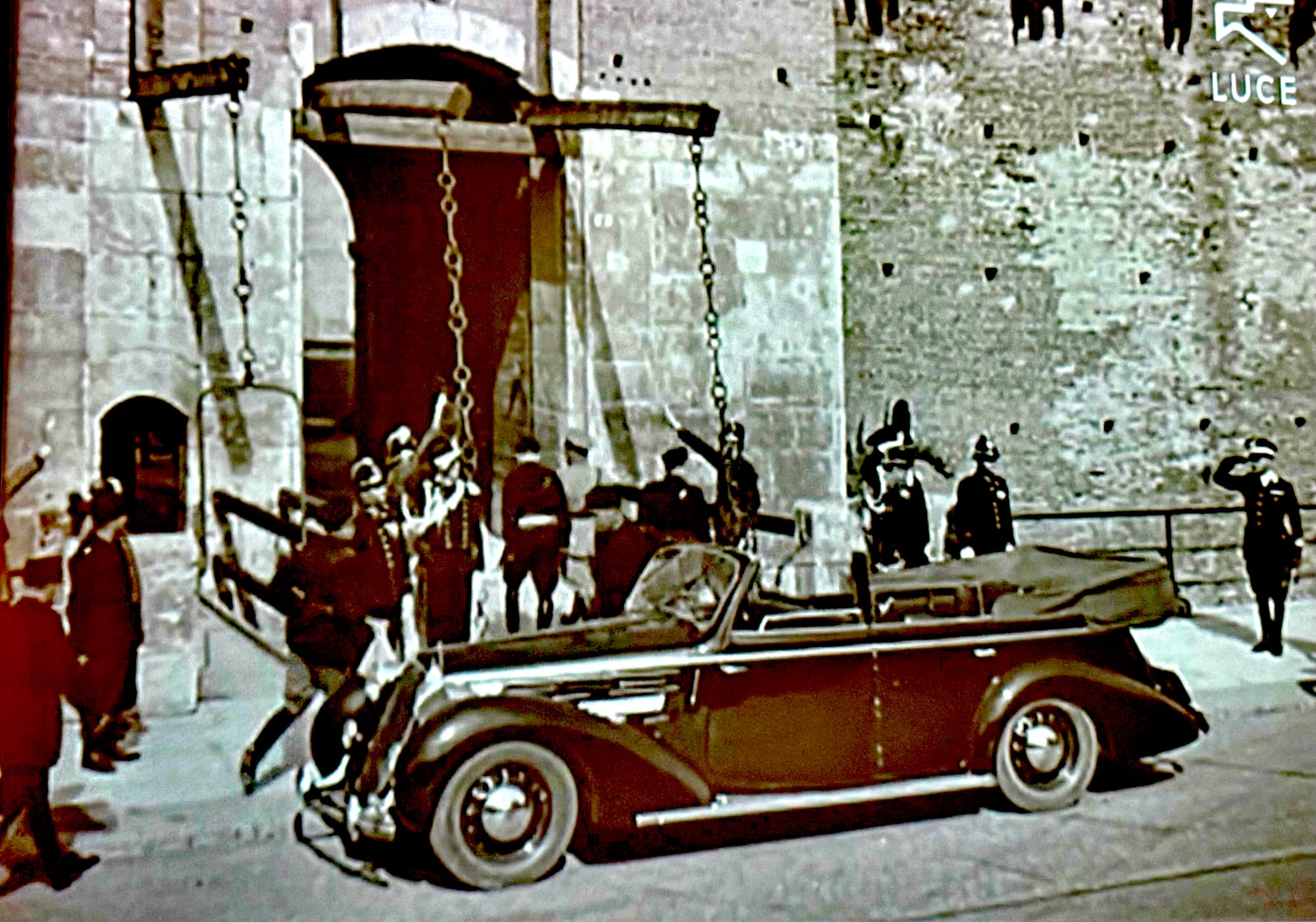 The film shows Mussolini entering the castle via the same drawbridge tourists tread today.