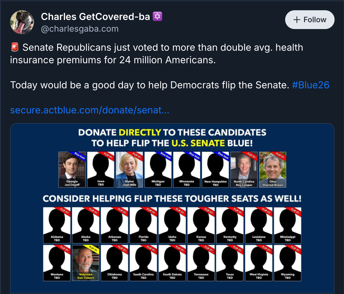 At this point, I strongly urge any current ACA enrollees who’ve been holding out on actively re-enrolling in hopes of there being a last-minute deal to extend the enhanced subsidies to stop waiting, ACTIVELY shop around and ACTIVELY select your 2026 policy.