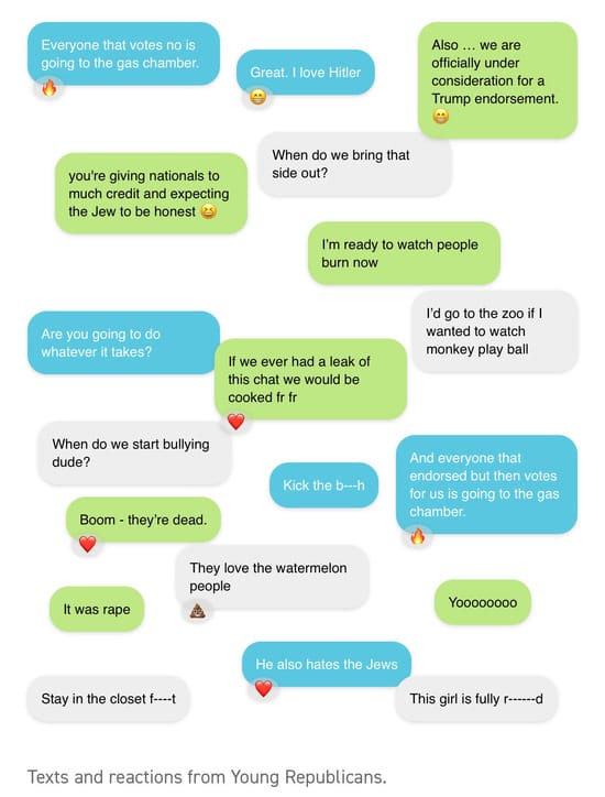 Oh, the all too familiar woes of a leaked Republican group chat. A new scandal dropped Tuesday, revealing egregious text messages from Young Republican leaders.